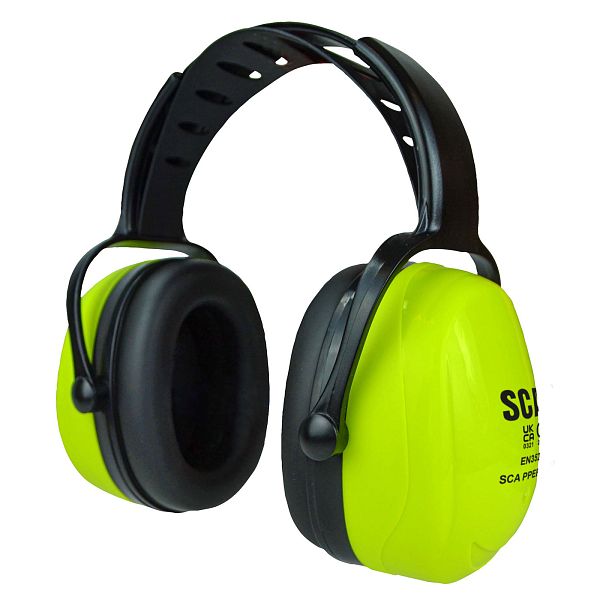 Scan Hi-Vis Ear Defenders offer a high noise cancelling ratio of SNR 33dB. They are effective in reducing noise levels, whilst still allowing the wearer to hear normal conversation. The soft and wide PVC ear cushions enhance comfort, and the adjustable headband and cup height will fit the majority of wearers. They are foldable for easy storage. The fluorescent yellow colour enhances visibility.This ear defender has a Single Number Rating (SNR) of 33, meaning it will reduce noise by 33 decibels (db).